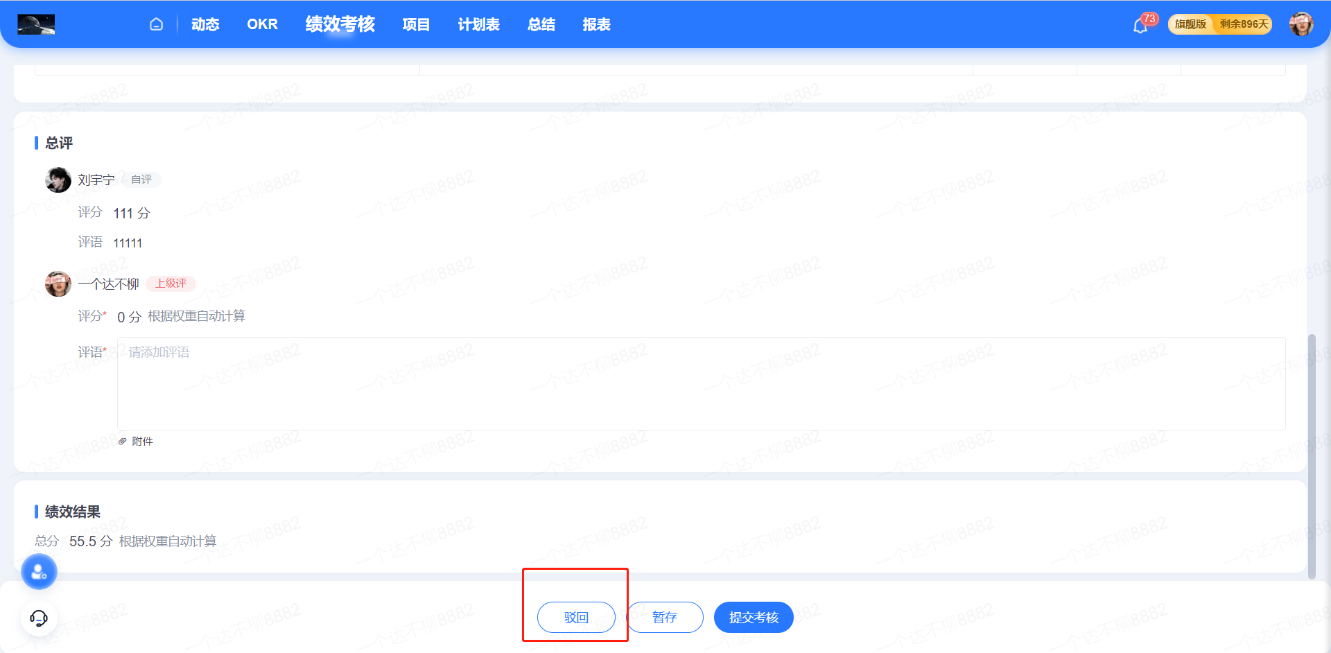 上级评价时,如果发现员工自评不合理,上级可以驳回员工重新评价。