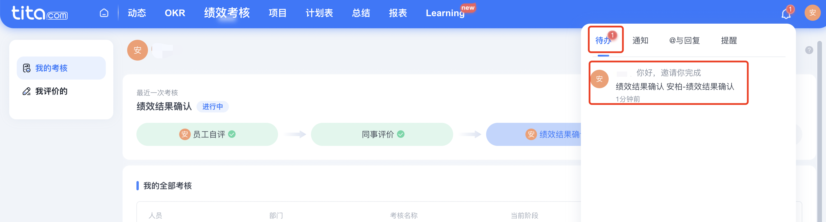 Tita 产品使用手册-钉钉版 绩效考核 员工如何确认考核结果 在绩效结果公布后,员工将收到考核结果确认的待办通知。点击进入考核详情,员工即可看到发起考核时允许被考核人看到的内容若对结果无异议,点击“确认并提交”;若有异议,且允许员工进行申诉,即可点击“申诉“进行结果的申诉。